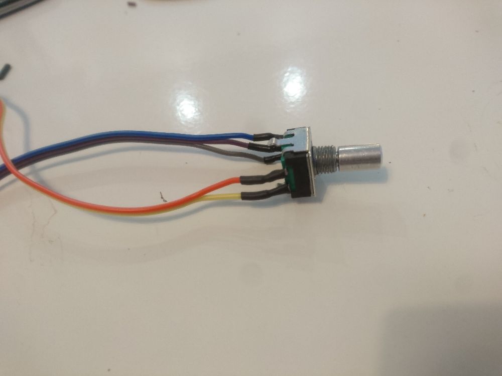 Three pins are used for the rotary encoder (volume), two pins for the push button (mute/un-mute).