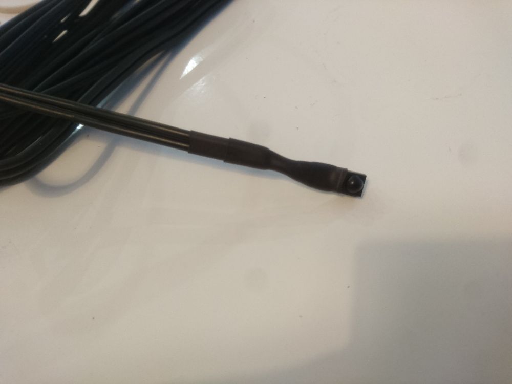 As the box is mostly hidden under the bed, I have attached the IR sensor at the end of a 3m cable, terminated with a 3.5 mm jack. Then sensor will end up living discreetly on a shelf above the bed.
