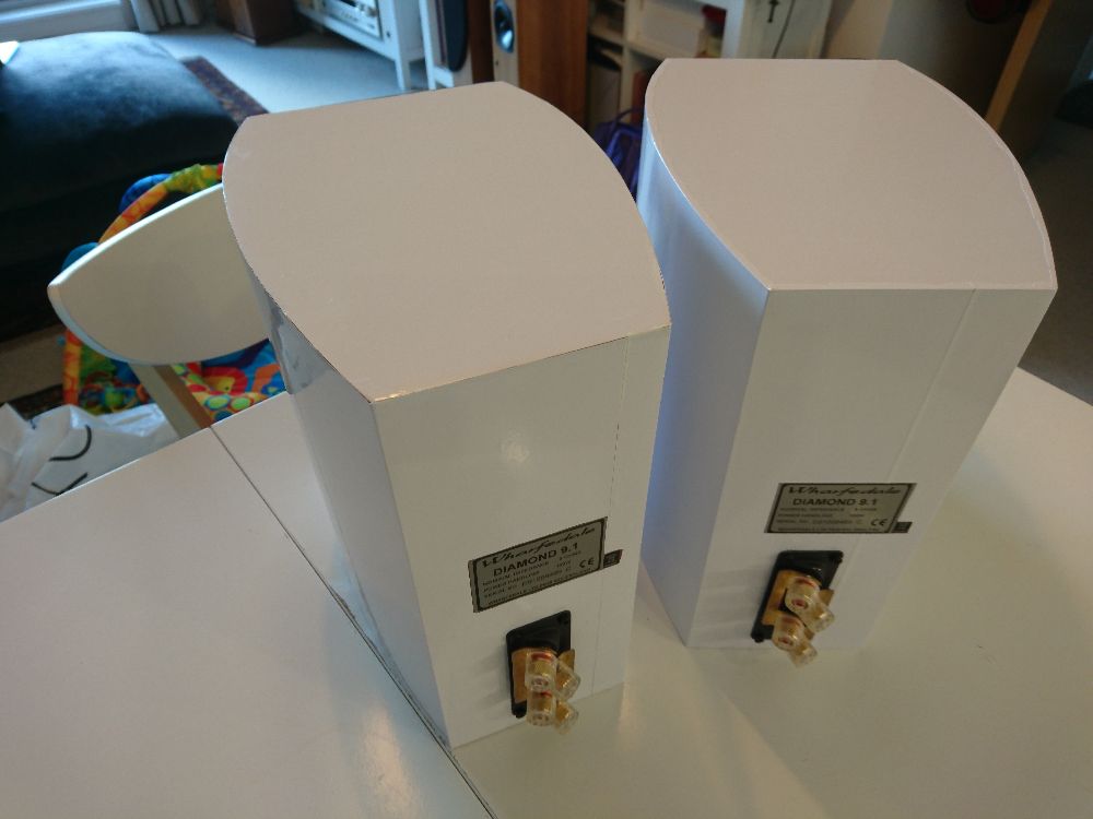 Turning Wharfedale Diamond 9.1 speakers white