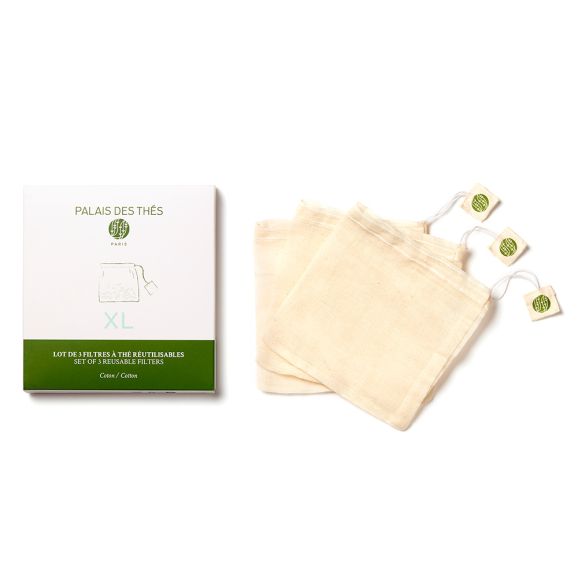 Ce lot de 3 filtres à thé réutilisables, en coton non chloré, est idéal pour infuser tous types de thés et infusions de manière écologique et économique.